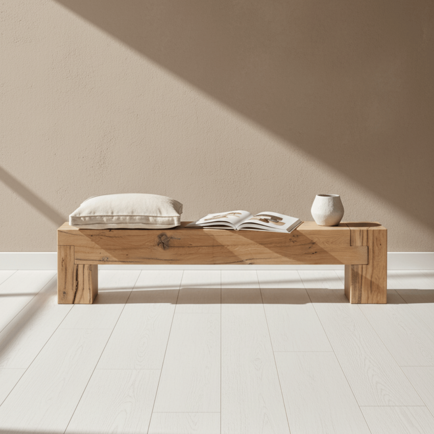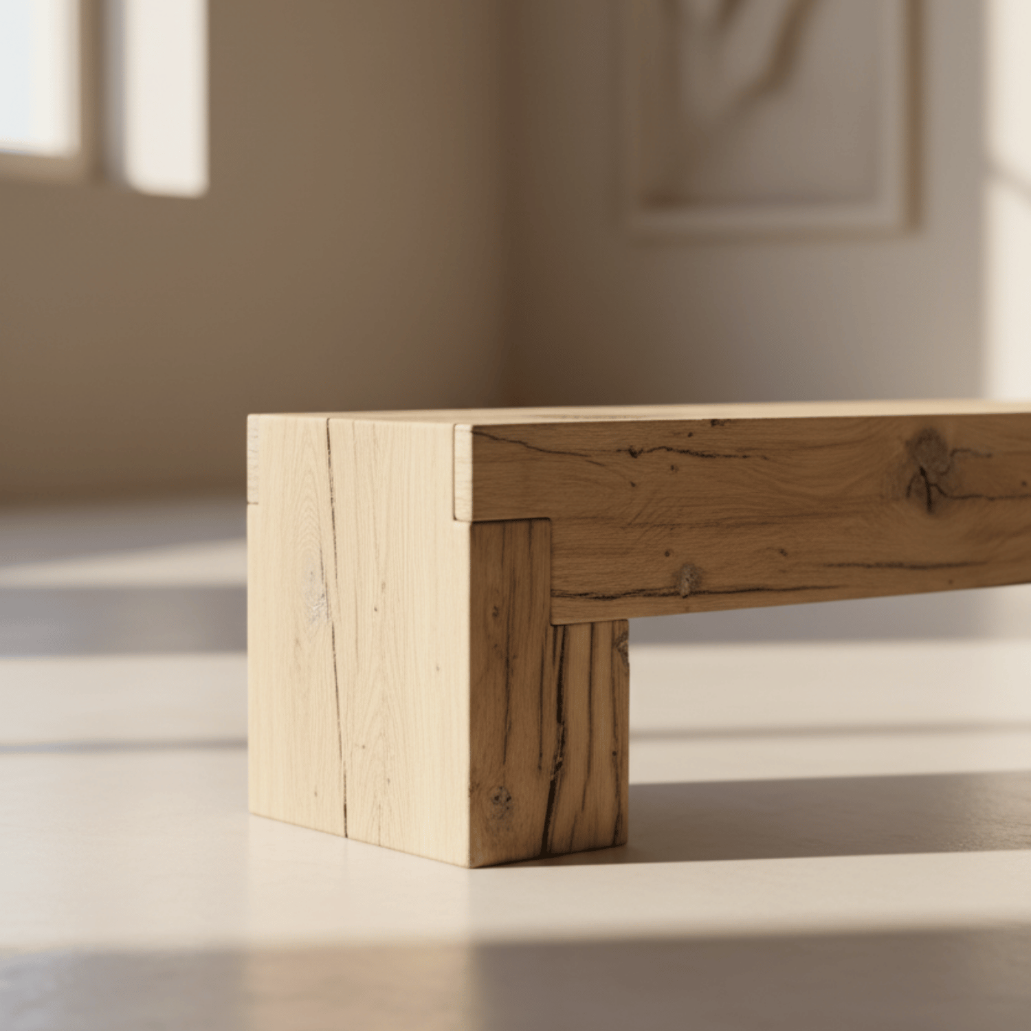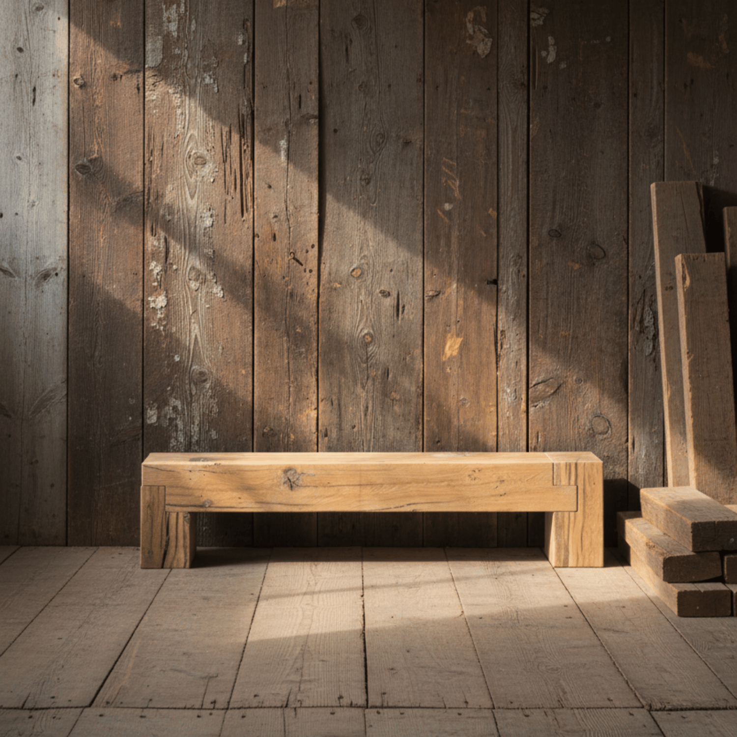 Sable Bench, tarihi yapılardan ve eski ambarlardan geri kazanılmış antik meşe ahşabının en saf ve yalın halini temsil eder. Keskin geometrik hatları, ahşabın üzerindeki derin lifleri, doğal budakları ve yaşanmışlık izlerini ön plana çıkarır. Hem modern bir heykel kadar net çizgilere sahip hem de rustik bir miras kadar sıcak olan bu model, yemek masalarınızın tamamlayıcısı veya antrelerinizin en dikkat çekici parçası olmaya adaydır.