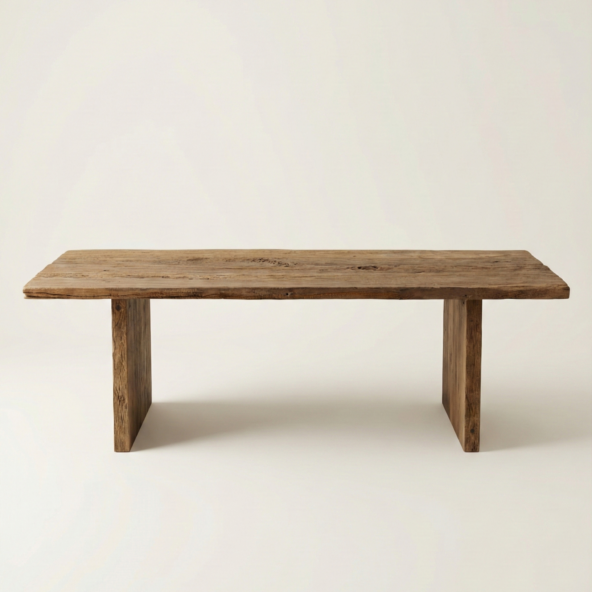 Thebes Yemek Masası, geçmişin izlerini taşıyan geri kazanılmış antik meşe ahşabının tüm gücünü ve doğallığını sergiler. Tasarımında kullanılan geniş masif paneller, ahşabın üzerindeki asırlık budakları ve derin dokuları ön plana çıkarır. Hem modern bir heykel kadar keskin hatlara sahip hem de rustik bir miras kadar sıcak olan bu model, yemek odanızın en dikkat çekici parçası olmaya adaydır.